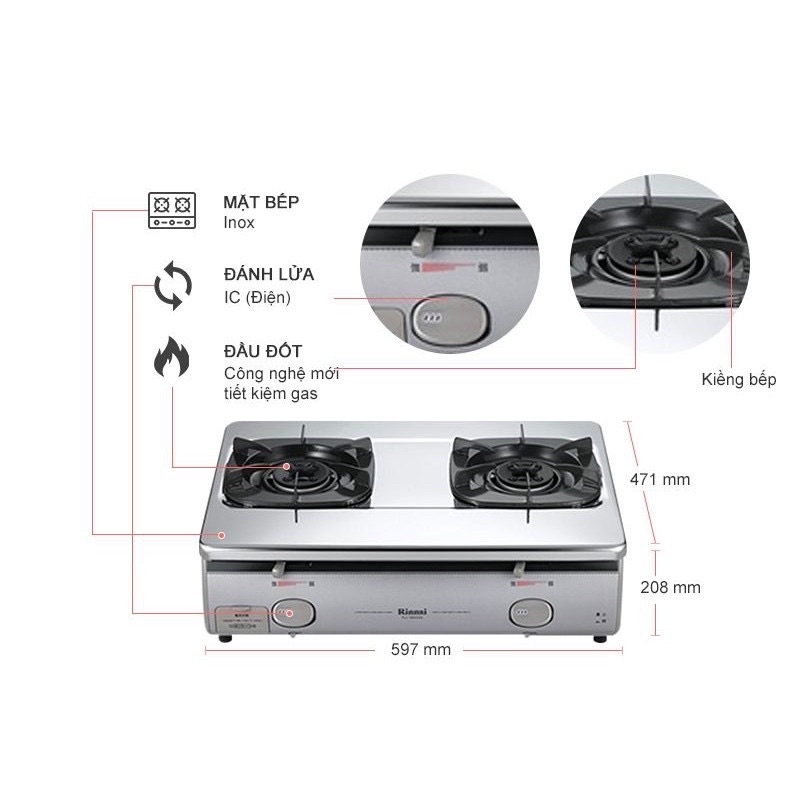 Thông số kỹ thuật Bếp gas dương Rinnai RJ-9600S