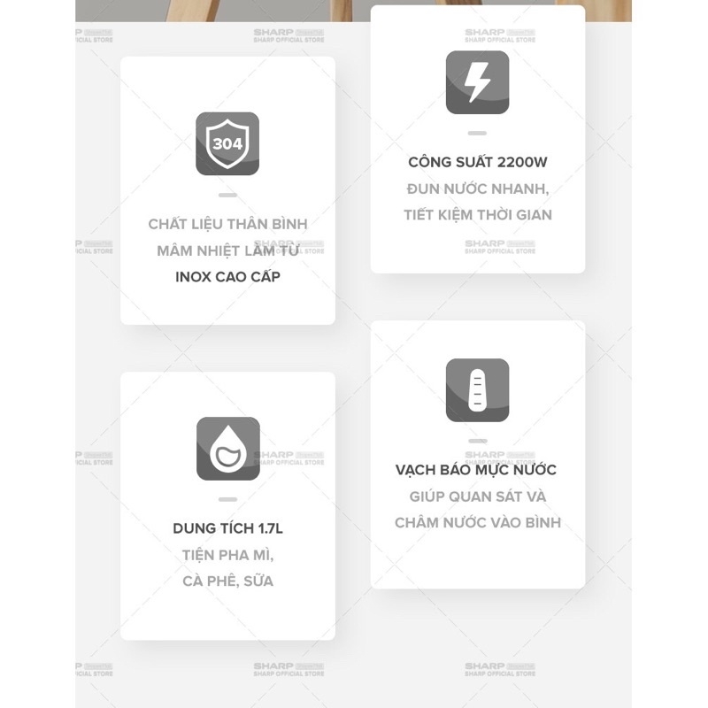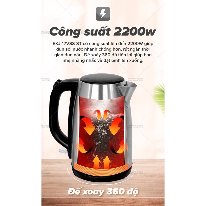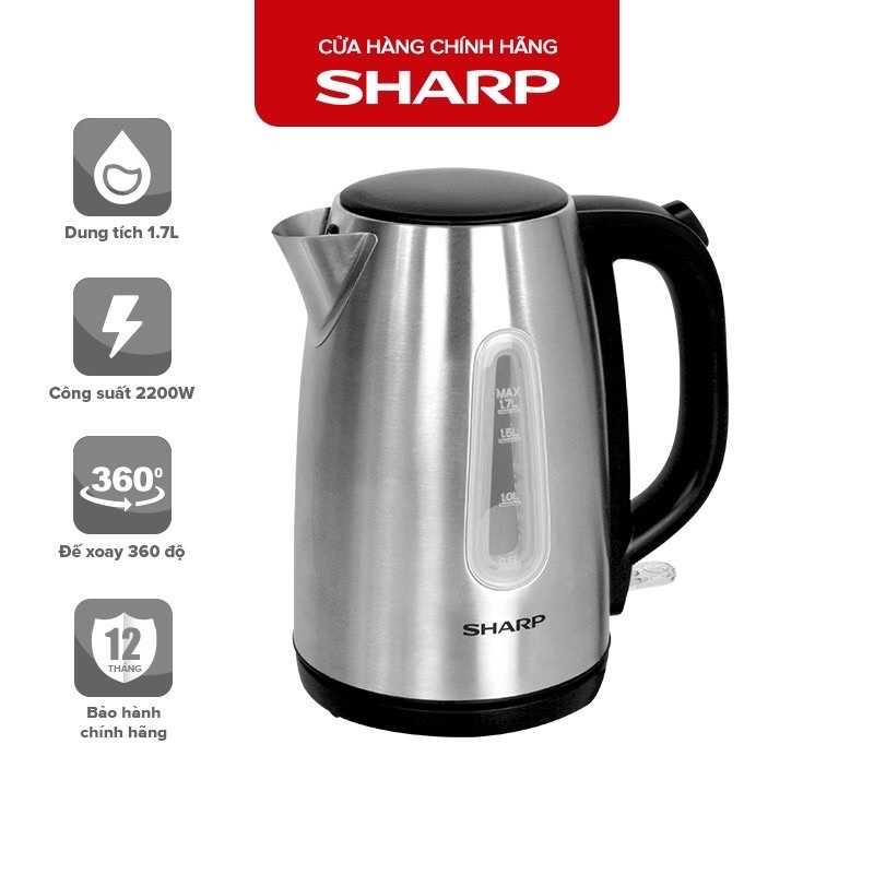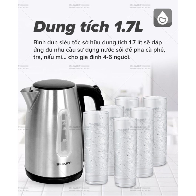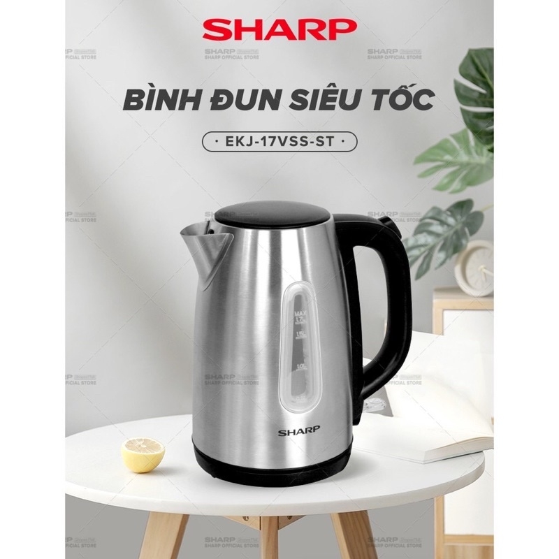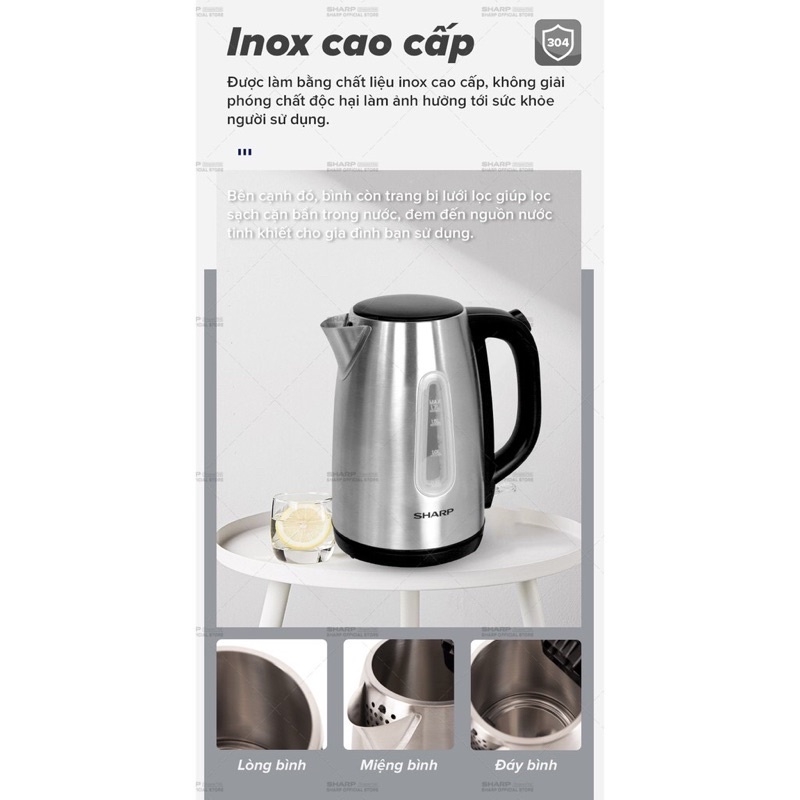 Bình Đun Siêu Tốc Sharp EKJ-17VSS-ST. Ruột bình inox 304 chống rỉ