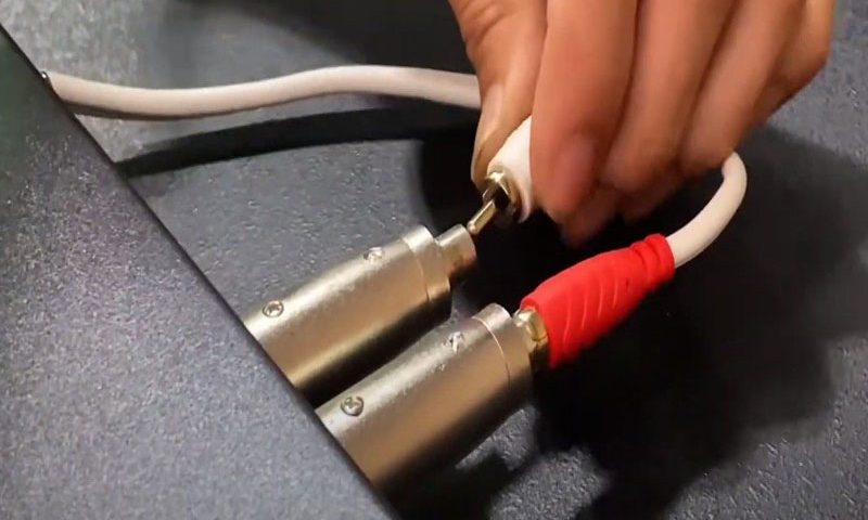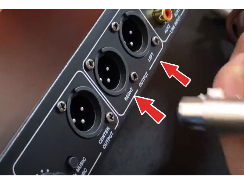 Bước 1: Cắm jack Canon đực, cái vào cổng tín hiệu Line Out trên vang số.