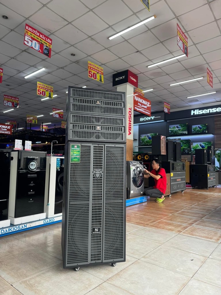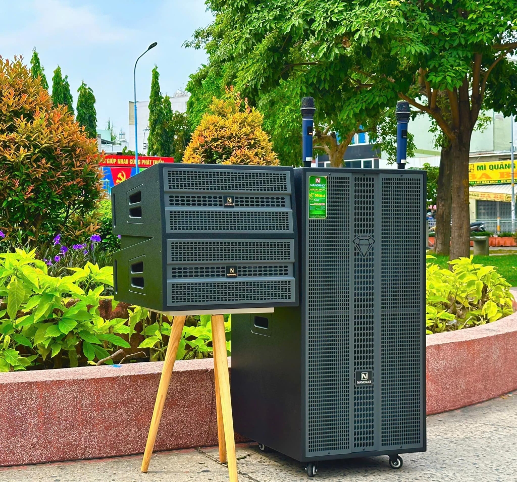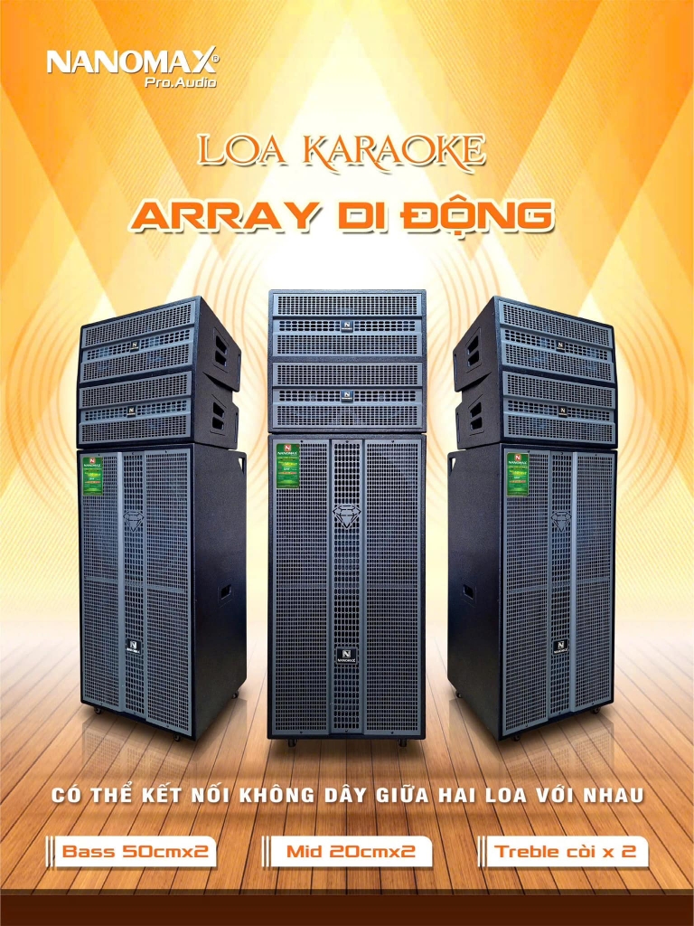 2 Bass 5 tấc, 2 Mid 20cm, 2 Treble còi. Công suất lớn 3000w.