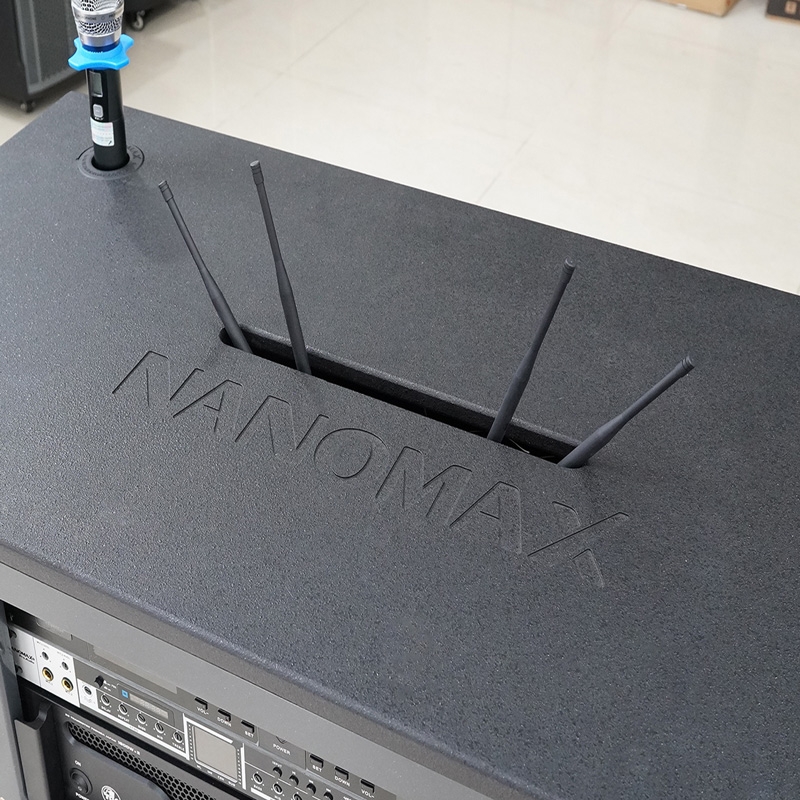 Kết nối Micro không dây: Mic hoạt động trên Bank tần UHF, điều chỉnh được tần số