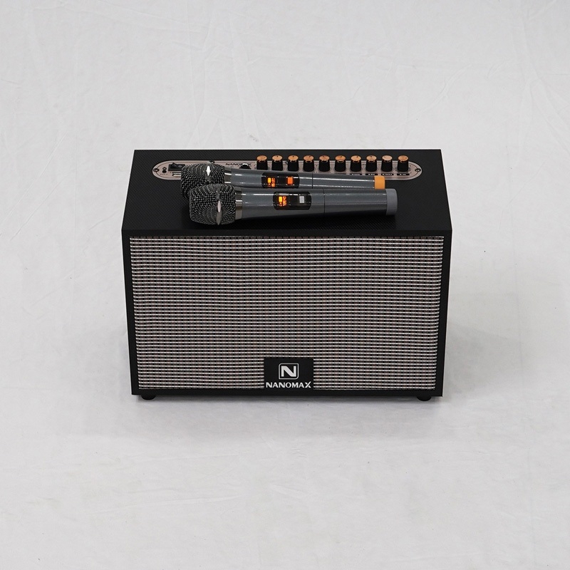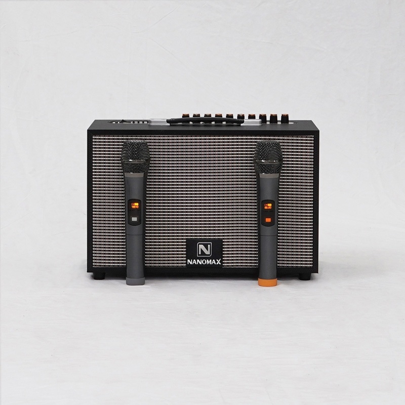 Loa Karaoke Xách Tay Nanomax K-01 Đen Bass 20cm 120w Tặng Kèm 2 Mic Hát Karaoke