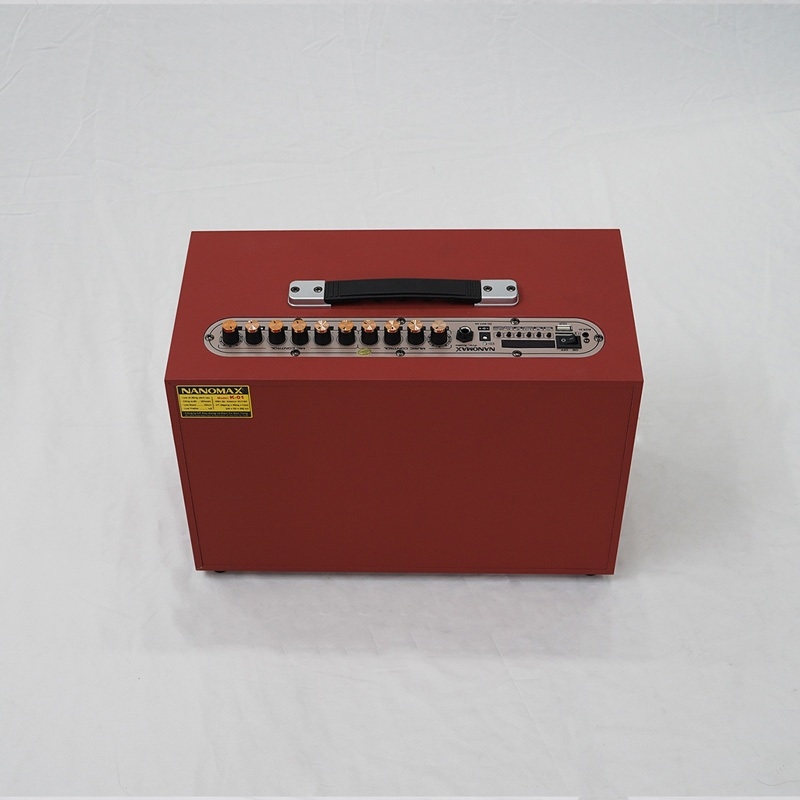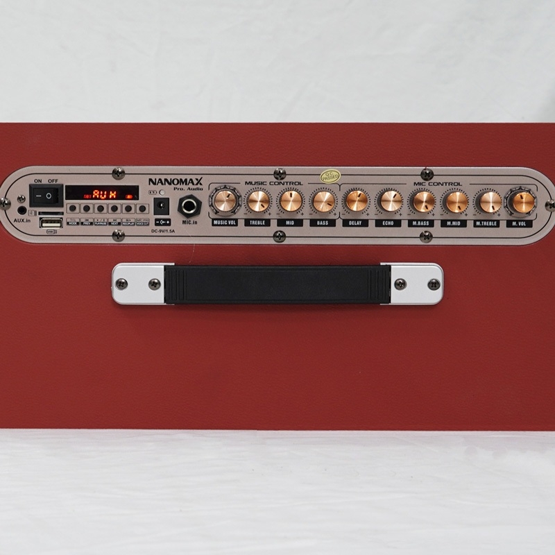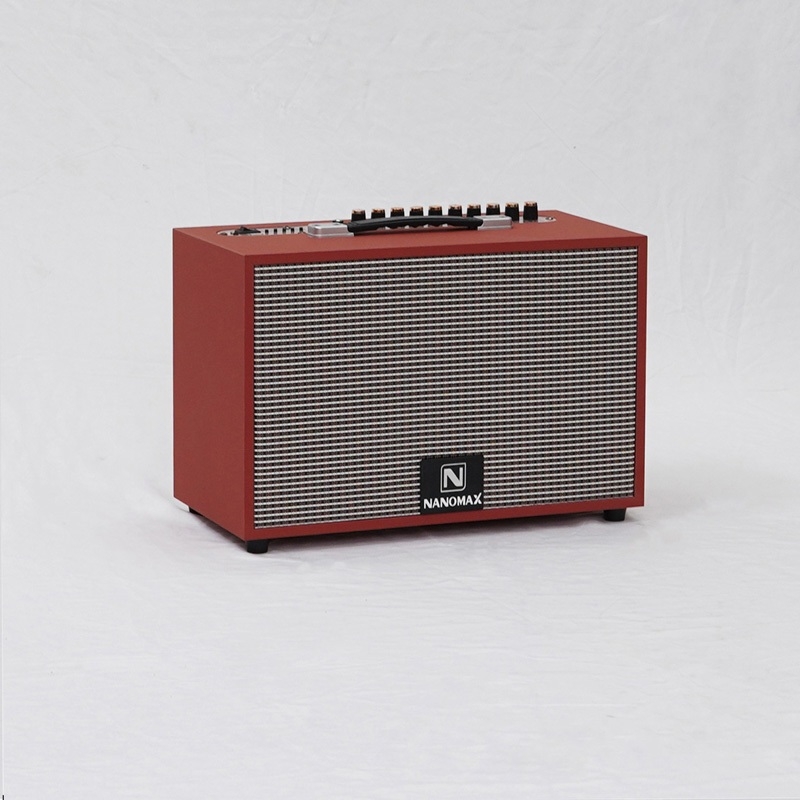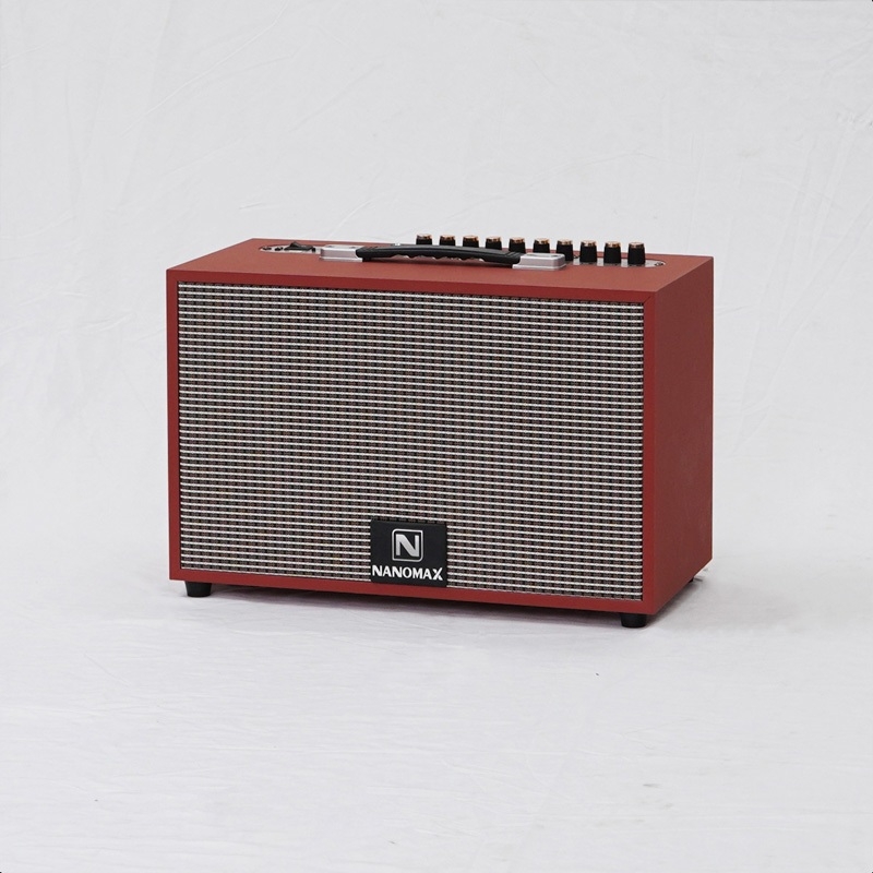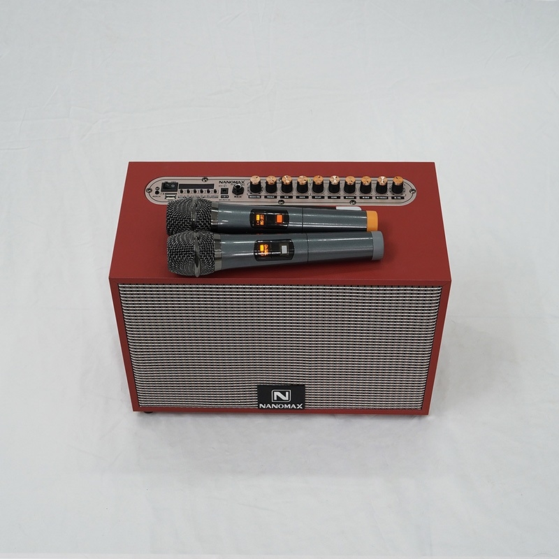 Loa Karaoke Xách Tay Nanomax K-01 ( Nâu ) Bass 20cm 120w Tặng Kèm 2 Mic Hát Karaoke