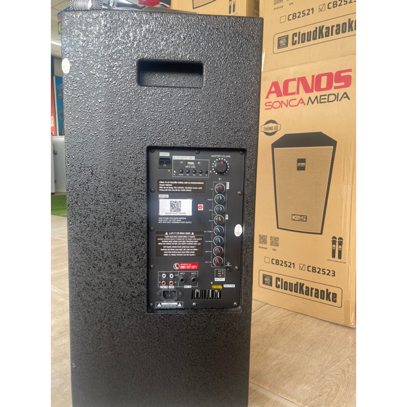 - Loa Karaoke Bluetooth ACNOS CB2523 sử dụng thùng gỗ. Công suất âm thanh PMPO 600W (max) - Công suất thực RMS 150W (max). Hệ thống loa bass đôi 2,5 tấc (25cm) và loa Treble - Chất âm mạnh mẽ, sống động. Micro UHF không dây nhẹ hơi, nâng giọng hát karaoke chuyên nghiệp