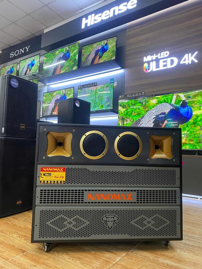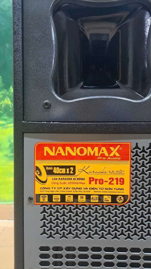 Loa karaoke điện Nanomax PRO-219 được chế tác với đường nét gọn gàng, hình dạng tối giản, sang trọng với gam màu đen phối xám sang trọng, thùng loa bằng chất liệu gỗ sơn chống trầy, mặt trước dạng lưới bằng kim loại cho độ bền cao, phát âm thanh hay hơn, thiết kế bánh xe nằm bên dưới thân loa và tay cầm được thiết kế ở bên hông cho bạn dễ dàng kéo đẩy, di chuyển loa đến bất kỳ vị trí nào bạn muốn mà không tốn nhiều công sức. THÔNG SỐ KỸ THUẬT LOA KÉO BASS ĐÔI NANOMAX PRO-219: • Sản phẩm: Loa KaraOke di động • Tên hãng: NANOMAX • Model: Pro-219 • Công suất tối đa: 1800W • Sử dụng nguồn điện: AC 220V/50Hz hoặc Ăc qui 12V • Loa Bass: 2 loa • Loa Treble: 2 loa • Kích thước loa Bass: 40 cm x2 • Loa Treble: Treble họng còi x2 • Kết nối tín hiệu Bluetooth: Bluetooth 5.0 • Kết nối Micro không dây: Mic hoạt động trên Bank tần UHF, điều chỉnh được tần số • Kết nối USB - Thẻ nhớ: Cổng USB 2.0 - thẻ SD • Kết nối tín hiệu số: Cổng Optical • Kết nối Micro có dây: Jack cắm chuẩn 6.5 li x 2 cổng • Kết nối thiết bị ngoài (Đầu đĩa, TV, ...): Jack cắm RCA • Chất liệu thùng Loa: Gỗ ép sơn gai chống thấm chống trầy • Kích thước thùng gỗ: (94 x 45 x 77)cm • Trọng lượng: 70Kg Tất cả sản phẩm luôn được test kĩ càng và đóng gói cẩn thận trước khi gửi nên giảm được 99% hư hỏng. Quý khách muốn kiểm tra hàng trước khi nhận thì nên yêu cầu shipper gọi shop khi giao hàng. Bộ loa karaoke: loa, 2 mic, dây sạc, 4 pin AA, 1 tờ hướng dẫn của hãng, bên ngoài bọc 2 lớp chống sốc. Liên hệ shop ngay sau khi nhận hàng nếu cần hướng dẫn dùng loa. BẢO HÀNH LOA KẸO KÉO NANOMAX: • 1 đổi 1 bị lỗi khi nhận • Bass và mạch: 12 tháng • Mic và ắc quy: 6 tháng Điện Máy Hoàng Kim TPHCM tự tin và cam kết về chất lượng sản phẩm, chúng tôi luôn mong muốn mang sản phẩm tốt nhất tới tay quý khách. #loabluetooth #loakaraoke #loakeo #loakeokeo #nanomax #loakeodidong #loadidong #loahatkaraoke #loakeobass30 #loakeo3tac #loakeodien #mickaraoke #loakeokaraoke #loakaraokegiare #loakeonanomax #loakaraokedidong #loahatkaraoke