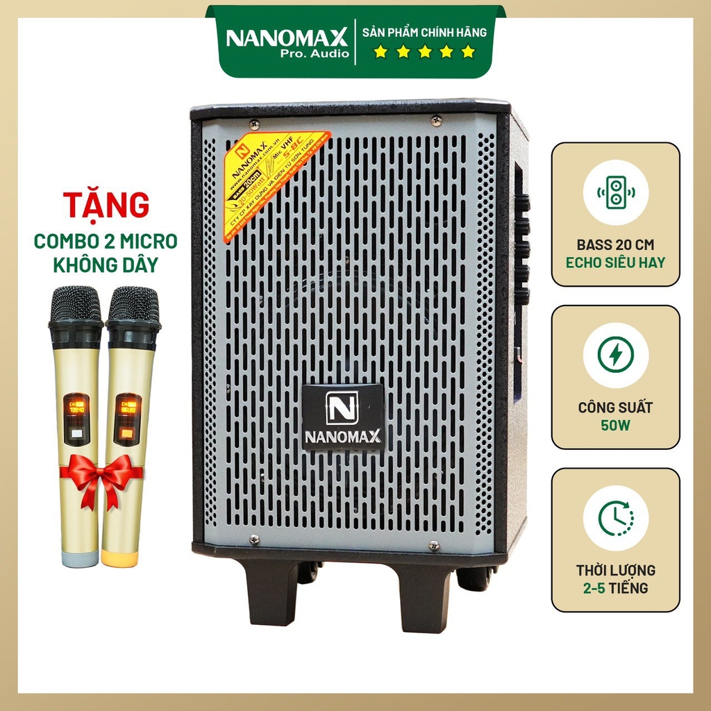 Nanomax S-8C là phiên bản loa karaoke mini 2 micro VHF có kích thước nhỏ gọn và xinh xắn. Sở hữu công suất 50w, loa 2 đường tiếng gồm 1 bass 20cm và 1 treble, nhưng âm thanh to ngang loa bass 25. Nanomax S8C phù hợp hát karaoke trong phòng có diện tích vừa và nhỏ
