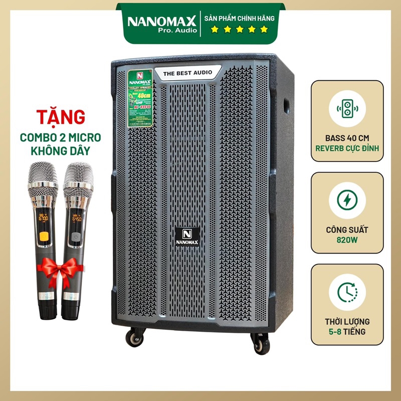 Loa Kéo Nanomax K-180 Bass 40cm 820w Lưới Xám Karaoke Bluetooth
