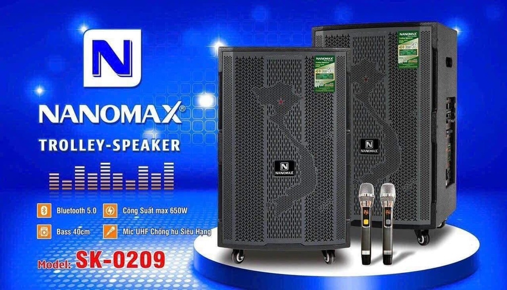 Loa Kéo Nanomax SK-0209 Bass 4 Tấc 40cm Công Suất 650w Karaoke Bluetooth