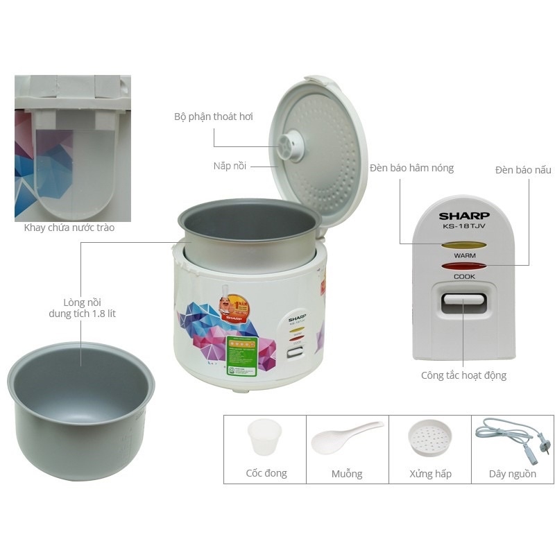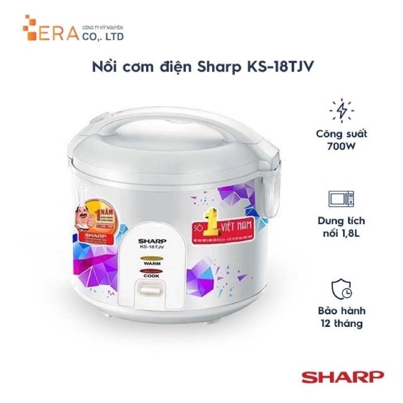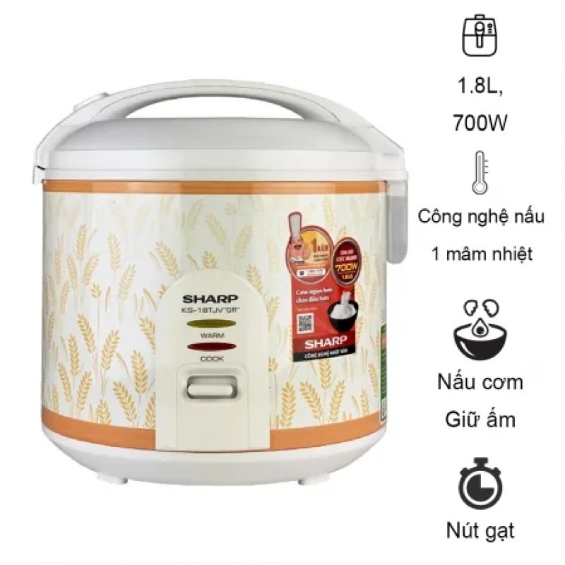 Nồi cơm điện Sharp 1.8 lít, nồi cơm năp gài mini 700W nấu nhanh cho gia đình, dân văn phòng